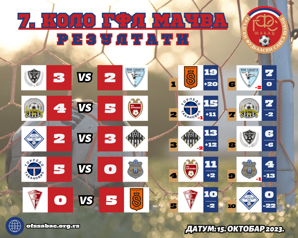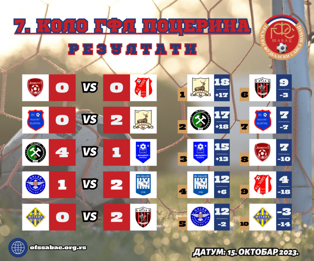 У оквиру ове вести можете пратити видети све резултате, табеле и стрелце након 7. кола градских фудбалских лига Шабац – Мачва и Поцерина.