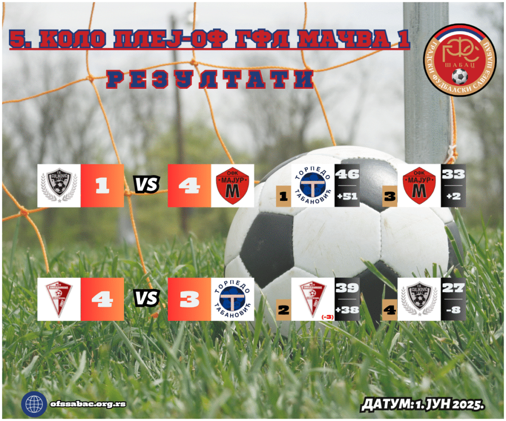 Насупрот овој групи, последње коло плеј-офа у групе Мачва 1 дефинитивно неће донети драж резултатске неизвесности. Омладинац је, победом над Торпедом (4:3), и дефинитивно осигурао друго место које води у бараж. Током читавог меча имали су резултатску контролу, а на полувремену чак и три гола предности. Првак је тек при крају успео само да ублажи пораз, у 87. минуту. Овај исход није одговарао Мајуру, који је, упркос тријумфу у Цуљковићу (1:4), остао шест бодова иза Омладинца пред последњи меч. И Мајурци су водили са 3:0 већ на паузи и мирно привели меч крају, стигавши до 10. победе у сезони.
