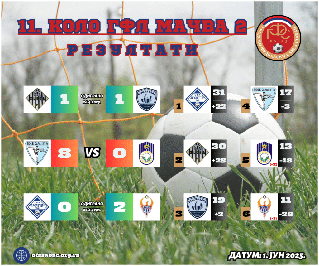 У групи Мачва 2 неколико тимова има продужену сезону ради надокнаде одложених утакмица. Думача је своју завршила на тежак начин – убедљивим поразом у гостима код Савацијуума (8:0). Тим из Шапца тиме је дошао у позицију да се у последњем мечу бори за високо треће место, за шта ће им бити потребна сва три бода са гостовања код Феникса.