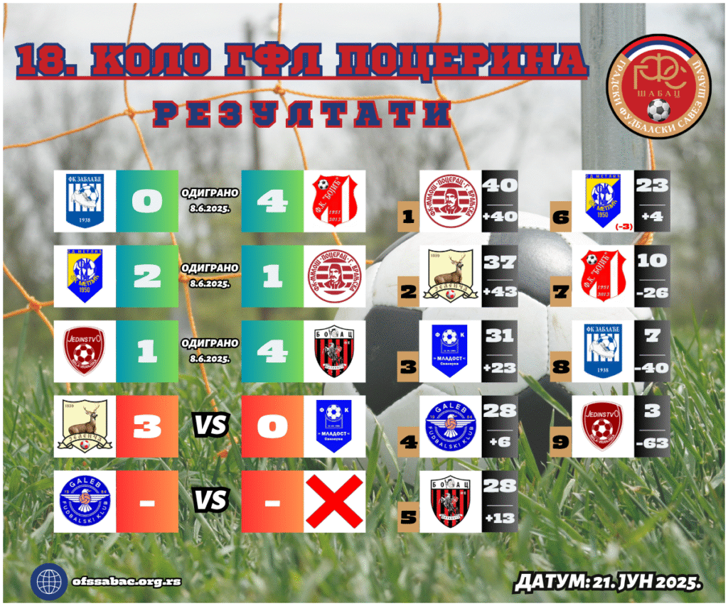 Утакмица 18. кола ГФЛ Шабац – група “Поцерина” између Јелена (Јеленча) и Младости (Свилеува) завршена је резултатом 3:0 (3:0) у корист домаће екипе. Стрелци за Јелен били су Предраг Гладовић у 7. минуту, те Урош Дрмановић у 19. и 32. минуту утакмице. Меч је испратио велики број гледалаца – 250.