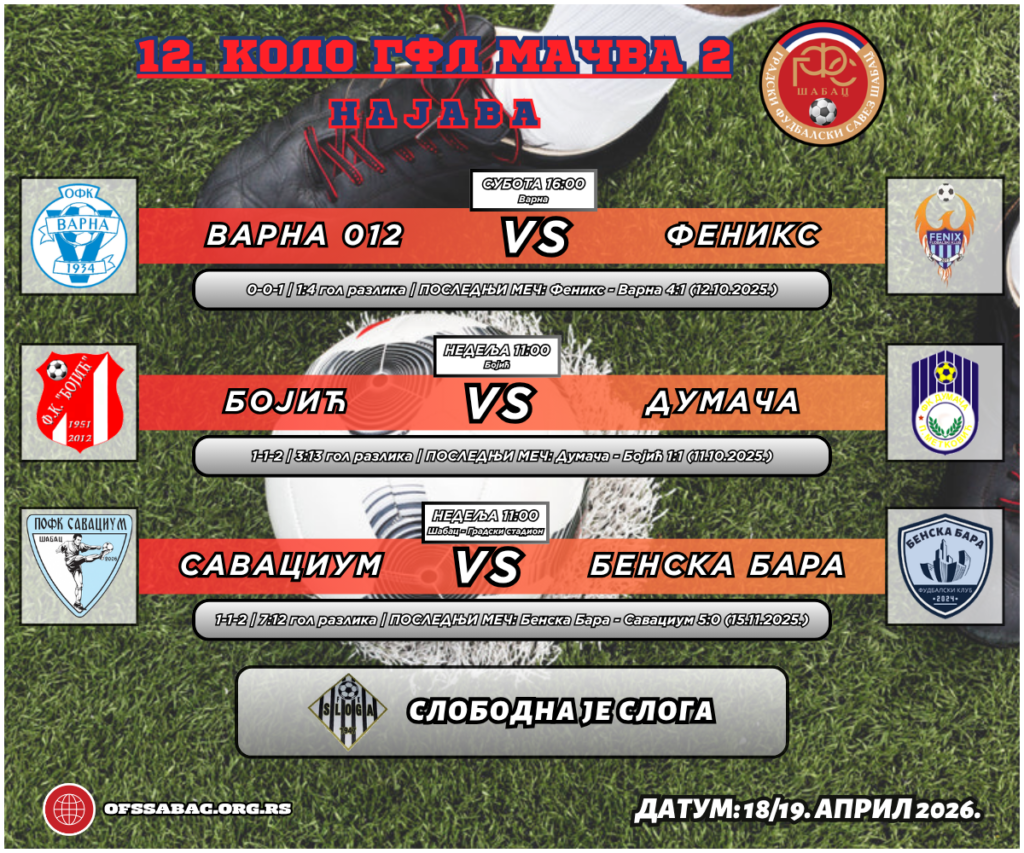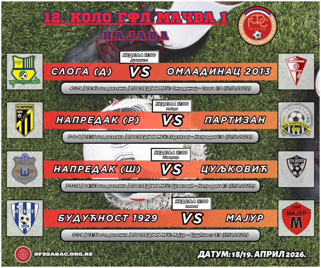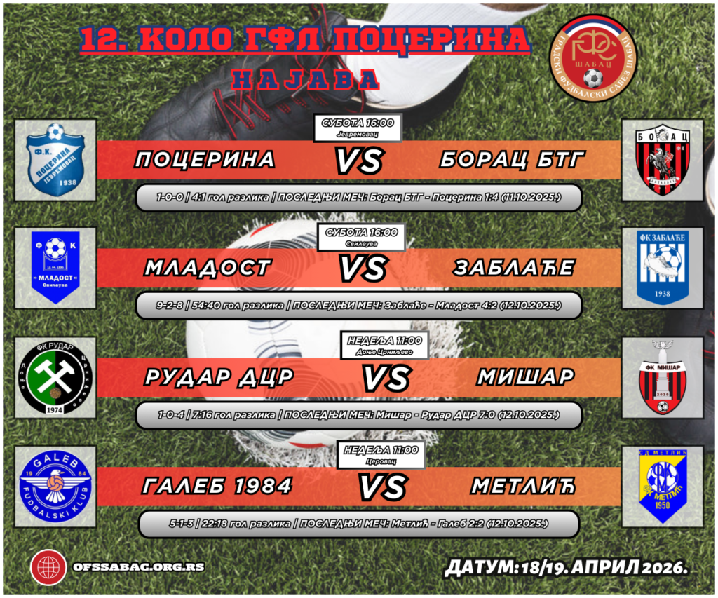 Пред нама је 12. коло у три групе ГФЛ Шабац предпоследње у регуларном делу пре плеј-офа. У све три групе нас очекују дербији и директни окршаји за плеј-оф позиције.